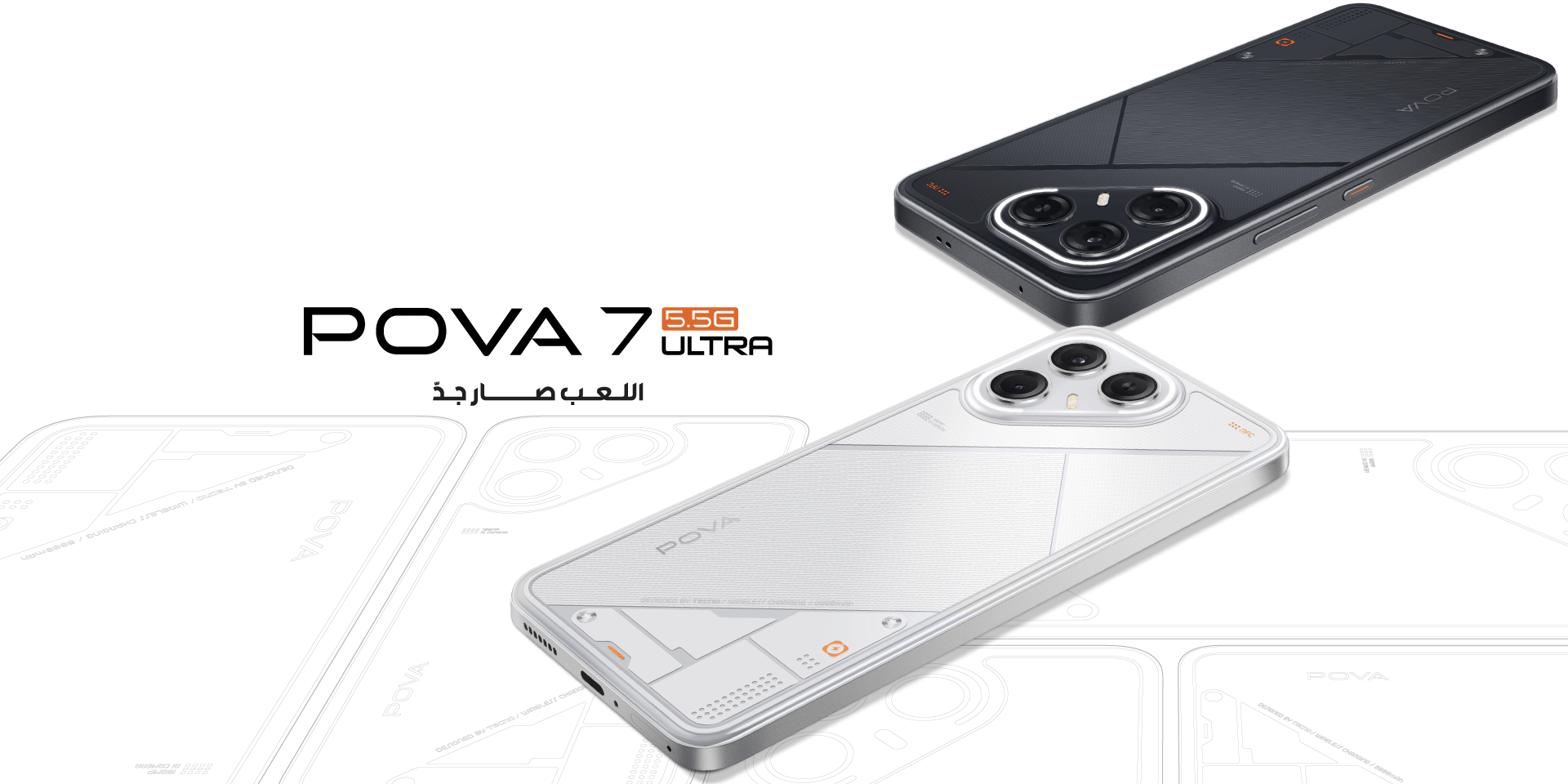 تميّز POVA 7 Ultra 5G بخطوط جريئة وانسيابية وأسلوب نقي وبسيط. إنه المكان الذي تلتقي فيه التقنية بالموضة — كل انعكاس للضوء يأسرك، وكل لمسة تخليك ما تقدر تتركه.